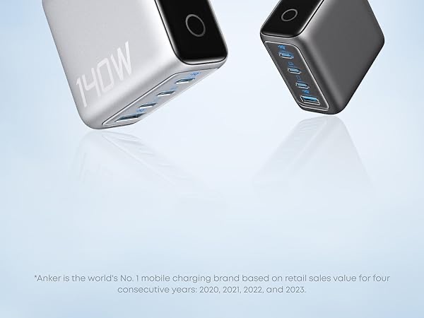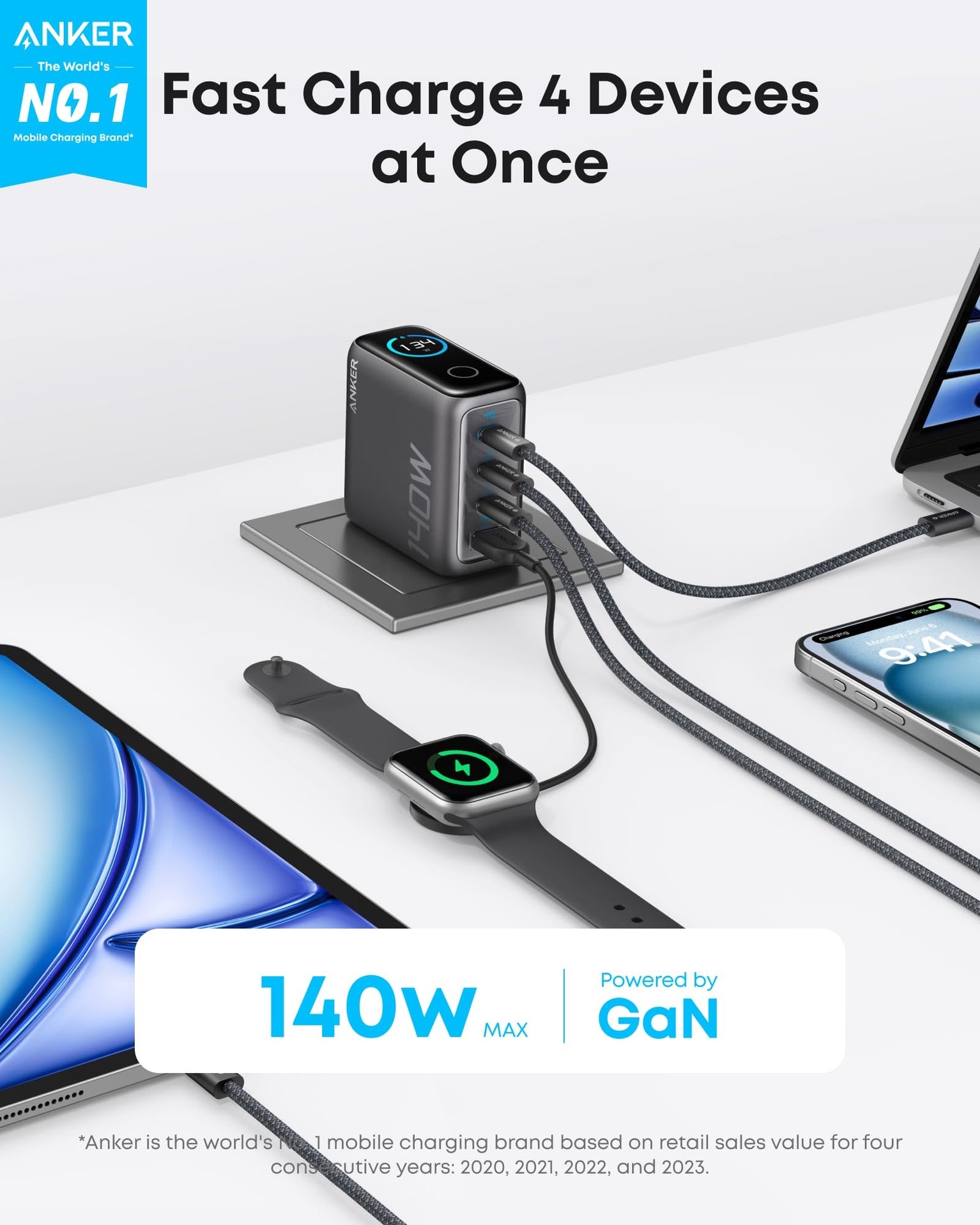 شاحن أنكر 140W يمنحك شحن سريع وآمن لكل أجهزتك في وقت واحد.